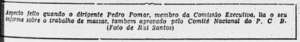 Na verdade, o PCB continuava tateando o caminho da democratização, pisando leve a cada passo em um terreno ainda minado pelos remanescentes do nazi-fascismo. Pedro Pomar lembrou que as recomendações do Informe de João Amazonas no “Pleno da Vitória” estavam em plena vigência. Contudo, jamais os comunistas hastearam a bandeira branca ou ensarilharam as armas. “Nunca fomos nem somos contra as greves. Tratava-se, como ainda se trata, de evitar provocações e agitações sem sentido. Mas ficar de braços cruzados diante de salários de fome e de condições de trabalho desumanas nunca foi orientação de nosso Partido”, enfatizou. E enumerou mais uma série de diretivas que deveriam guiar a ação dos comunistas no movimento sindical.
